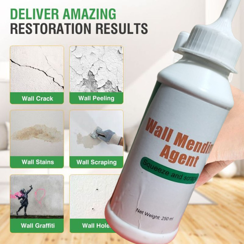 Everything you need for wall mending— all in one easy tool. The product creates a quick-drying patch. It dries hard enough to hold a nail or screw. And the mending will be virtually invisible, then giving you professional-looking results.